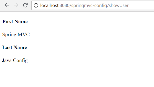 In this Spring MVC Java configuration example we’ll create two views (JSPs), that will give you a better idea about the controller mapping, how Java model bean is bound to a web form and the Spring web MVC flow ) (request - Servlet – Controller – Model – View).