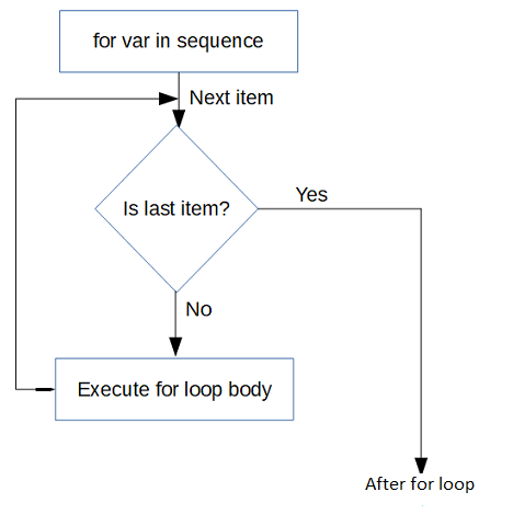 All the elements in the sequence are iterated one by one using the for loop, in each iteration element is assigned to the “var” and the for loop body is executed.